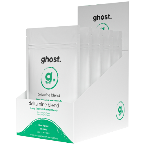 Balanced and potent, each bag contains 20 gummies at 50mg each, infused with a 1:1 ratio of Delta 9 THC and CBD—500mg of each per bag for a total of 1000mg. Sold in display cases of 5 bags, available in 4 delicious fruit flavors. A perfect option for customers seeking both powerful effects and balanced relief.